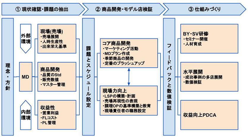 コア商品の開発と育成、HACCP対応とマニュアル化、食品表示と添加物、FLコストの考え方、計数管理など